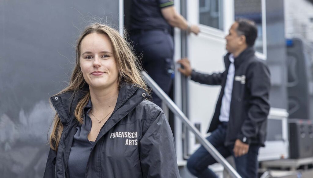 Dat je medisch onderlegd moet zijn spreekt voor zich, maar ook juridische kennis is van belang. De opleiding is daarop ingericht, vertelt Daisy. ‘Eén keer per week wordt er onderwijs over gegeven, ook door mensen uit de politie- en justitiewereld. Je leert bijvoorbeeld hoe je een politierapport schrijft, of hoe je iemand met een verslaving in de cel behandelt. Een verrijking, als je het mij vraagt – ik leer zóveel nieuwe dingen over strafrecht. Dat moet ook wel, want zeker tijdens een overlijdensonderzoek werk je nauw samen met de recherche en forensische politie. Waar zij telefoongegevens, camerabeelden en sporen onderzoeken, voer jij de lijkschouw uit. Je moet er samen een kloppend verhaal van maken en kijken of alle puzzelstukjes passen.’